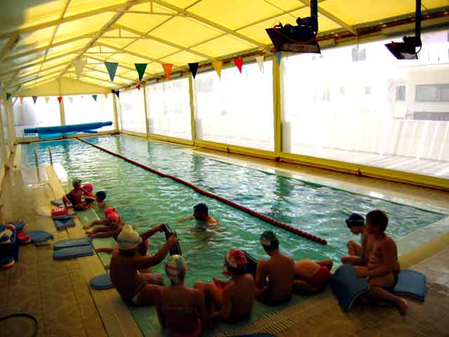In the Olympic dimension swimming pool you can attend Aqua Aerobic lessons with exercises for the whole body. Ideal for people with health knuckle problems. The pool is ecological with sea water constantly recycled.