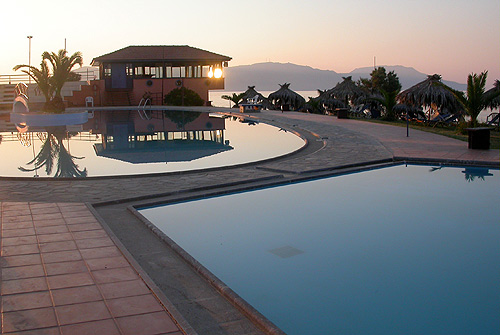 The traditional Hotel Alexandros was built in the center of an area with excellent natural beauty. It emphasizes the view of the mountains of Crete and also the gorgeous Mediterranean Sea. There are 90 rooms and all of them have air-condition, radio, safety box and satellite TV. The hotel is consisted of 5 buildings. The central building has got 42 rooms and there are also 4 bungalows, each bungalow has got 12 rooms. All the buildings are surrounded by a beautiful rain forest. The services which the hotel offers are: 24 hours room service, the opportunity of renting cars, motorcycles and bicycles, glambing hall, snack bar, restaurants, disco beach bar, swimming pool for adults and for children, amphitheater. Distances: From Rethymno: 12km - From Georgioupolis: 4km - From Chania: 40k - From Chania (airport): 42k - From Heraklion (airport): 92km - From the beach: 5m HOTEL BENEFITS: Central heating, air-conditioning, TV, Snack Bar, Disco Beach Bar, swimming pools, benefits for congresses, sitting room, parking, fireplace, restaurants, room service, Internet, fax, telephone center, facilities for people with disabilities. ROOM COMFORTS: Air-conditioning, heating, shower, safety box, music, TV, balcony, satellite TV, sea view, view to the swimming pool and to the gardens. OTHER BENEFITS: Billiard, horse riding, children's area, disco, table tennis, glambing hall, darts, jet ski, banana, windsurfing, pedalo, water ski, parachute, trips and renting of cars, motorcycles, bicycles and four-wheeled. MEALS: Breakfast: Restaurant (Buffet)- Lunch: Snack Bar (Buffet or price list) - Dinner: Restaurant (Buffet) EXTRA INFORMATION: Type of beach: Sand and Pebbles.