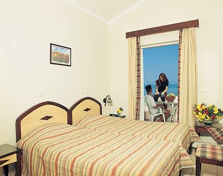 ACOMMODATION 5 Studios: for 1 to 2 persons, one bedroom, bath / toilet, kitchenette, balcony or terrace with garden furniture. 14 Apartments: for 1 to 5 persons, one bedroom, and one living room with beds, kitchenette, balcony or terrace with garden furniture. Modern furnished apartments with kitchenette. Balconies and terraces with see view. Daily cleaning except on Sundays. Satellite TV - Central heating - Air-conditioning - Direct call telephone with internet capability - Safe box. FACILITIES Sandy beach with sun beds and umbrellas - Swimming pool - Baby pool - Breakfast - lunch and dinner a la carte at the hotel snack-bar - Babysitting - Mountain bike rental - Car rental - Exclusive excursion program.