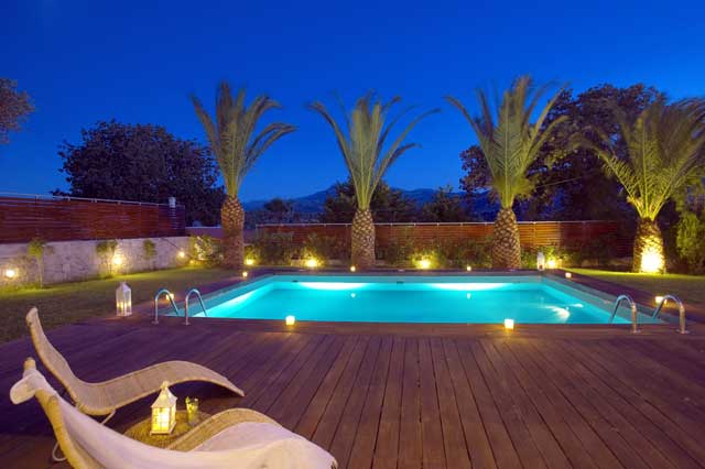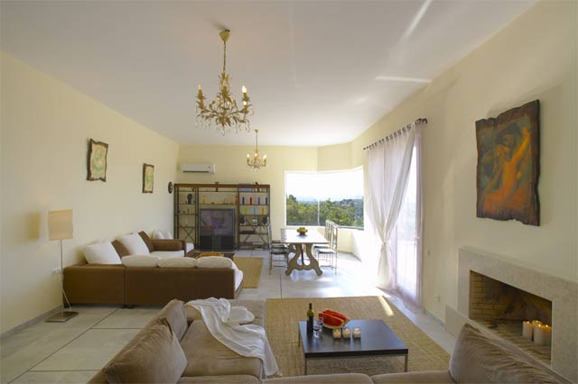 LOCATION: Villa Lucia is located in Episcopi village in Rethymno. Episcopi village is a very unique place for holidays because it combines all the needs that a traveler would search for. A beautiful 20km gold sand beach probably the best in the prefecture (said by the locals) is only 2 km away, and the village is situated up in a hill with an unlimited view of the Cretan sea. The village has many traditional taverns, typical Cretan cafeterias and all the shopping facilities that you will need during your holidays. Episcopi village is located almost in the middle of Chania and Rethymno and that makes it ideal for those who want to visit all the highlights of Crete quickly and easily. OVERVIEW: Villa Lucia is situated on a hill 500m away from Episcopi Village, in a 6 acres area full of trees and flowers, and with an aerial view of the Cretan sea. The interior size of the villa is around 300 square meters separated in two floors with an inside ladder. The villa can accommodate 10 to 12 persons in the 5 private bedrooms situated in the second floor. In the first floor there is a very spacious kitchen fully equipped and an extra large elegant sitting lounge with a wide 52inc screen satellite TV, DVD player music stereo, fire place and all the rest facilities that would make you feel like home. In the garden of the villa there is a comfortable pool with sun beds and a few sitting areas for your relaxation. The villa is in the middle of a 40 acres full with olive trees and with no other houses around, that makes it unique for those which loves privacy and quietness. Facilities: Ramp entrance for disable guests - Out door barbecue - Swimming pool max 2m - Fully equipped kitchenette - Washing machine - Hair dryer - Safe Box - Living room - Fire place - Hi-Fi stereo system - 52inc satellite TV - DVD player - 5 bedrooms - 3 bathrooms - Sauna - Parking area. Distances: Beach 2km - Episcopi village 500m - Rethymno town 17km - Chania town 38km - Heraklion town 90km. Conclusion: Villa Lucia is offering you all the required facilities for a luxurious stay in the most privilege location. Come and experience the Cretan hospitality, the Cretan natural beauty with its magnificent turquoise seas and sandy beaches at an affordable price. Don't miss out on the opportunity!!