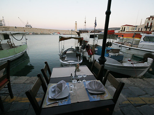 In the old port of Rethymno, just by the sea, with a view to the vast blue, the picturesque fish boats and the diachronic lighthouse, lies the fish tavern Erotokritos . Since 1967 up today the family Perakaki remains faithful to the Greek cuisine and stands out as one of the most flavorsome places of the island. With a sense of familiarity of the Cretan hospitality, Erotokritos tavern prepares delicious dishes that have fulfilled many famous persons preferences from the artistic and the political firmament throughout the world. In a beautiful place with main characteristic luxury and elegance, enjoy different kinds of cheese and dainties accompanied with wine and Greek music, juices made of fresh fruits, coffees, cocktails, pure wines etc. Taste the delicious salads and fish salads, various appetizers, seafood of all kinds, a suggestion is big shrimps (200 gr. each), completely fresh fishes coming from the Cretan seas, cooked food, Italian spaghetti, and grilled meat served with delicious sauces. The guarantee of excellent quality and magnificent flavours is the purity of the local ingredients and of olive oil used for the preparation of the tasteful dishes.