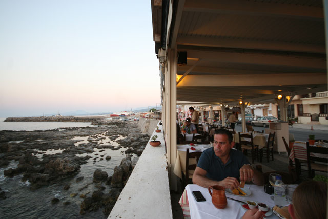 Delicacies meze from land and sea, salads from the Cretan land, home made cooked food, fresh fish from the fisherman and local Cretan grilled meat accompanied by local wine under the shadow of the castle.
