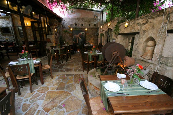 In the narrow foot-walks, in the center of the old town of Rethymno, just under the castle Forteza, where the history makes its presence very vivid, with a gentle breeze blowing, there you shall find the Pigadi restaurant. The owners Harris and his companies Vassilis and Giotis, full of love and respect for our land as well as the people, made this effort in order to offer the best quality to the best prices. In a beautiful stone house built at Enetic order of the 16th century, decorated with a lot of style, we add the knowledge and the talent and we look forward to guiding you to the world of the sumptuous feast of the original Greek and Cretan traditional cuisine with unique tastes. Open from 10.00 a.m. until 15.00 p.m. and from 18.00 until late in the night. Begin your day with any kind of coffee you prefer, an enriched breakfast, ice creams, traditional sweets, juices made of fresh fruits e.t.c. Afterwards enjoy different kinds of salads , grass salads, traditional side dishes such as patatos pigadi, eggplant with cheese, fried vegetable marrow or eggplants, fried tomato with basil, cheese pie, pinach pie, vegetable marrow pie, fishes and sea food, delicious cooked food in the oven or casserole and also roast grills, perfectly combining the taste and the quality so as to satisfy the most demanding connoisseurs of flavors. The olive oil, which is the base of every concoction as well as all the other ingredients used for the preparation of our dishes, are pure Cretan products of excellent quality. A huge variety of specialties such as shrimp ramekin, capsicums stuffed with feta (white cheese), grilled rabbit, different kinds of fillets served with delicious sauces, bekri nibble, traditional dolmadakia, spicy turkey, stuffed capsicums etc. Shall offer you a unique tasteful experience. This magnificent sumptuous feast is completed a great collection of home made and distilled wines as well as fine Cretan draught beer of excellent quality and raki. By your order we can prepare for you special menus such as shore dinner with completely fishes, rabbit stew, cock cooked with wine, wedding- pilaf, fishes like kochlios, roast lamb, etc. The prefect individual attention responds right away to your desires and your personal joys as well as your professional moments become unique. The spectacular place and the light Greek and foreign music will take you to a trip that you shall want to repeat every year.