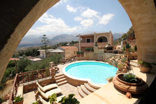 The traditional settlement of Samonas is a complete neighborhood located in the village of Samonas, in the district of Apokoronas, at an altitude of 400m and at a distance of 25km from Chania. The village still preserves its picturesque character since it is really very small and has very few inhabitants. Their main occupation is stock-raising, agriculture and apiculture. The settlement is built on a hill slope and it has such an orientation that it offers an impressive view from all dwellings. Looking over from the settlement\'s location, we get the impression that we could touch the Lefka Ori, or dive into the vast Cretan sea. Here you will experience unique moments of relaxation and complete tranquility in an authentically traditional area, without missing any of the comforts of the modern way of living, which we have quietly incorporated in all our dwellings. All our dwellings are two-storey (maisonettes) with unlimited view to the mountain and the sea. They are exclusively built in stone and wood to match their surroundings. Each is built at a different level due to the ground\'s steep slope, with common courtyards as well as independent verandas or balconies and quiet corners. All dwellings have two main entrances with traditional rustic locks and big iron keys. They are decorated with many small folklore objects and antiques. All incorporate the same comforts and luxury, although they differ in size and layout. On the ground floor, a) fully equipped built-in kitchen with oven, ceramic cook-stoves, refrigerator, freezer, dish washer, microwaves, coffee pot, toaster, small electric sweeper, pressure cooker and a whole line of well-known kitchen items and top quality dinner service. b) Dining room with a large table made of wood and marble and hand-made engraved chairs. c) Sitting room with fireplace, TV, DVD-player, stereo, telephone, double or triple couch with orthopedic mattresses which very easily converts to two single or one double bed. On the first floor,